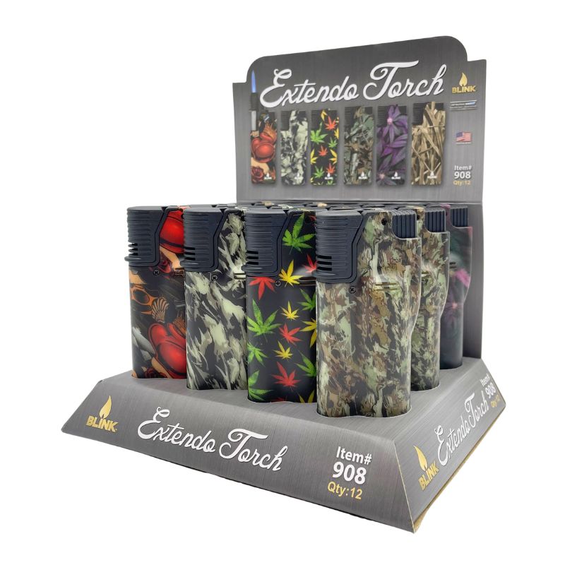 12ct Display 12 Displays per Master case Butane Refillable Flame Adjustable Various Designs 4.25 Inches