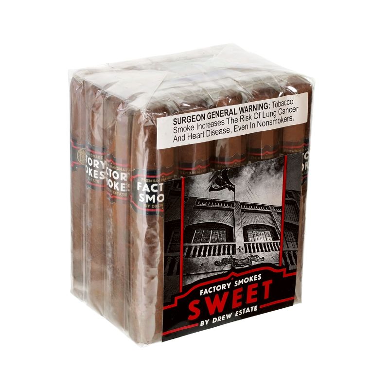 Factory Smokes Sweets provides a medium-bodied smoking experience at a smile inducing price. A delightful smoke with a sweetened tip and a warm tobacco profile accented with notes of coffee and vanilla.