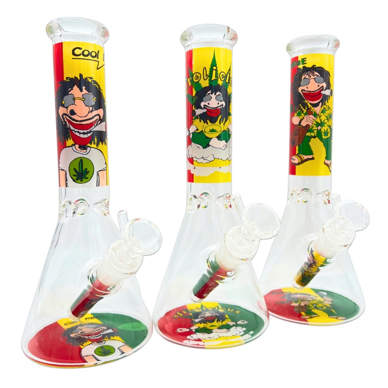 GLASS WATER PIPE RASTA MAN BEAKER 10″ RANDOM DESIGN [NO SHIPPING]