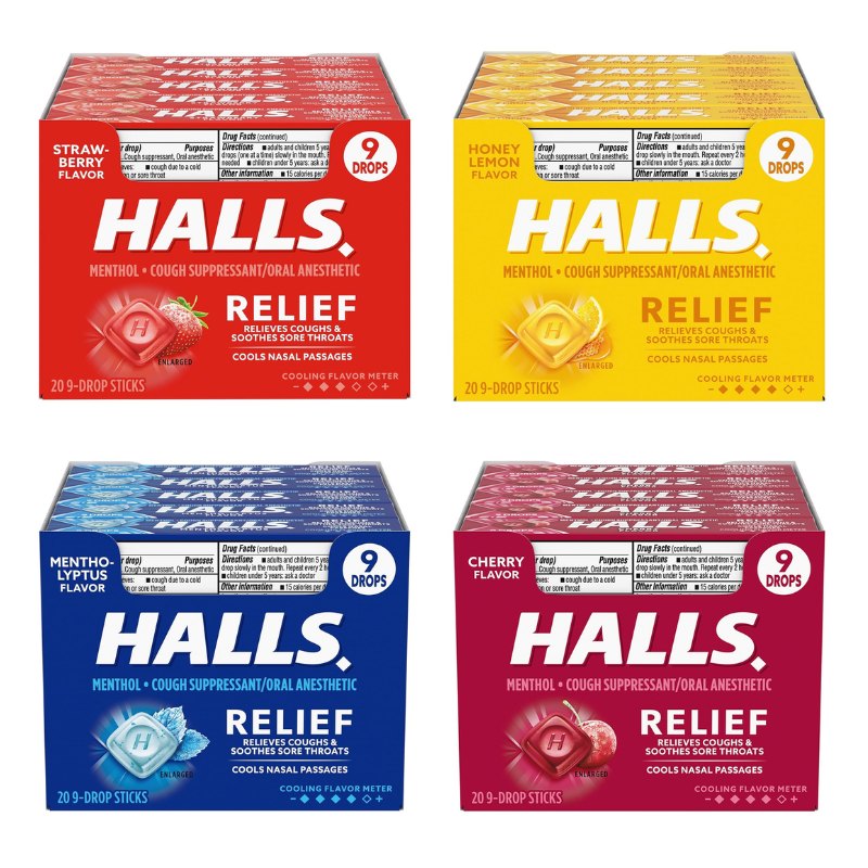 HALLS RELIEF MENTHOL COUGH DROPS 20/9 PACKS