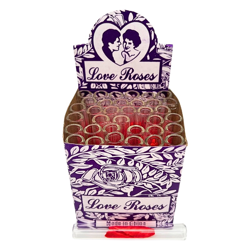 LOVE ROSES PURPLE 3″ GLASS ROSE TUBE 36PCS
