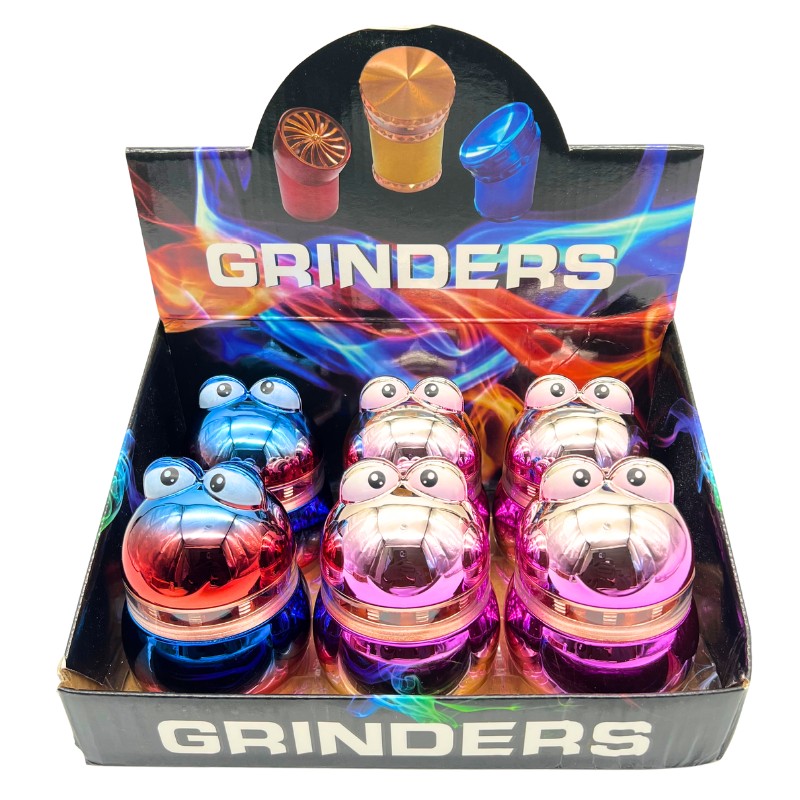 4-piece herb grinders 55mm wide Sharp metal teeth Colorful, shiny finish 6 grinders total 2.5 inches wide x 3.5 inches tall