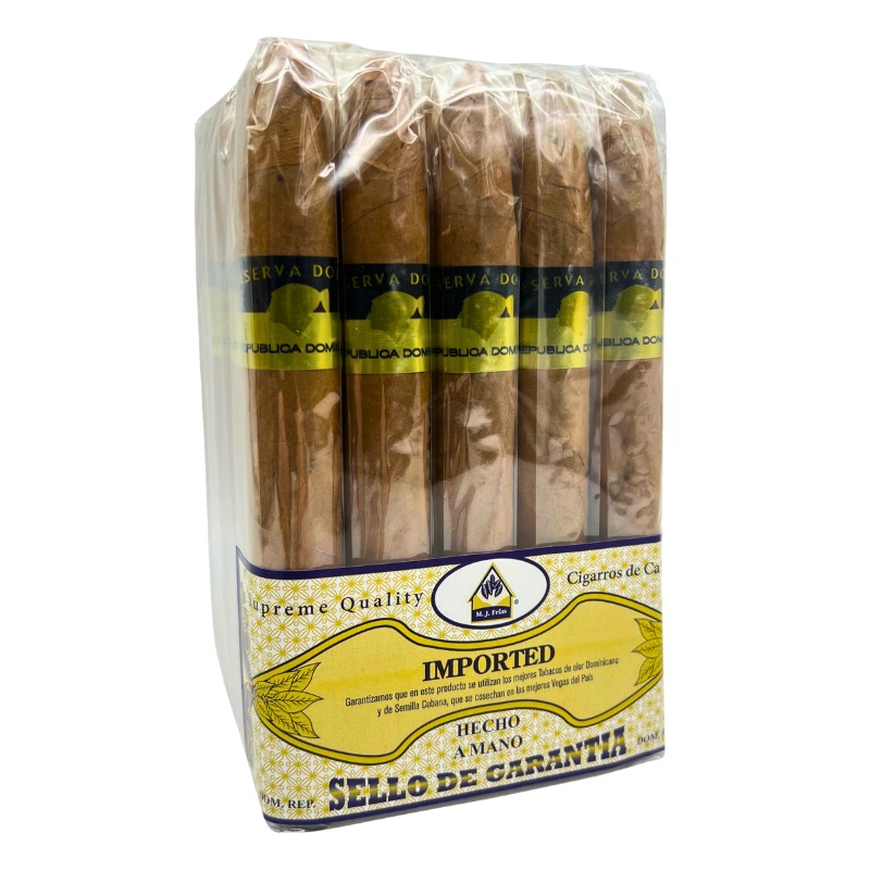 LOGIN FOR PRICEThe MJ Frias Reserva Dorada is a mild cigar that is handmade in the Dominican Republic. Its golden USA Connecticut Shade wrapper covers a Dominican binder and filler. The MJ Frias Dorada is a wallet-friendly, everyday smoke with a very creamy profile.
