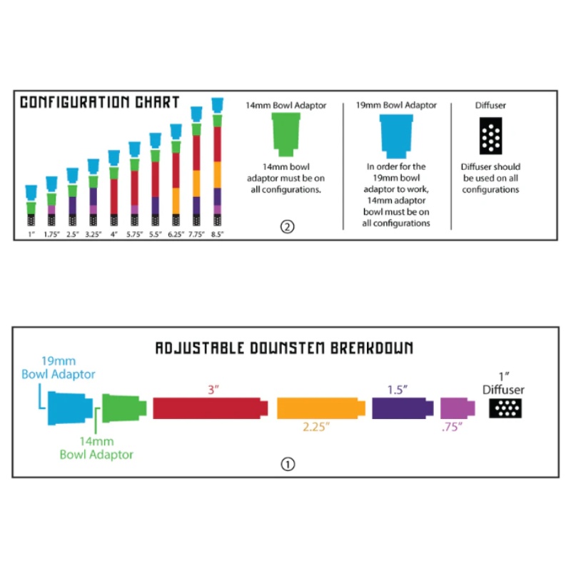 Display of 35 adjustable silicone downstems. Can extend from 1 inch up to 8.5 inches. 7 colors.