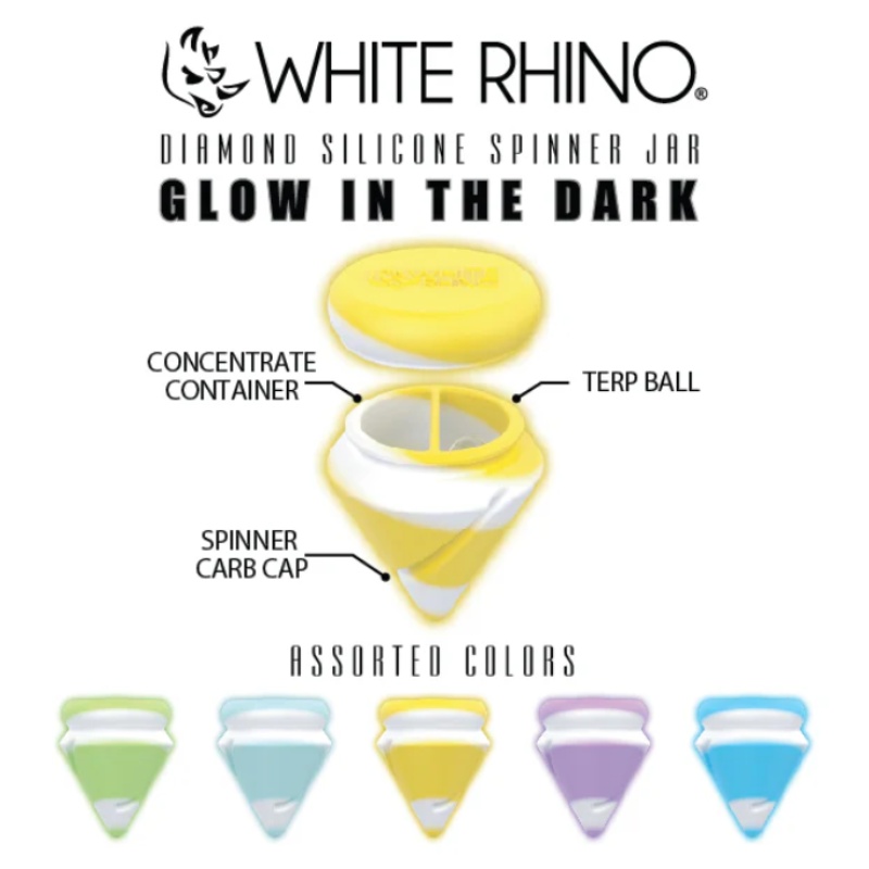 WHITE RHINO DIAMOND SILICONE SPINNER JAR GLOW IN THE DARK 45PCS