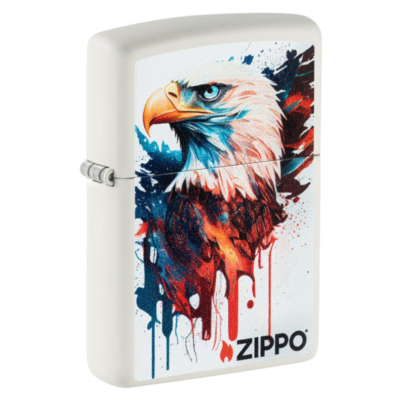 Show off your patriotic side with this classic White Matte lighter. A stoic bald eagle is captured in the vibrant Color Image design, which mimics a hand-painted portrait. Comes packaged in a gift box.