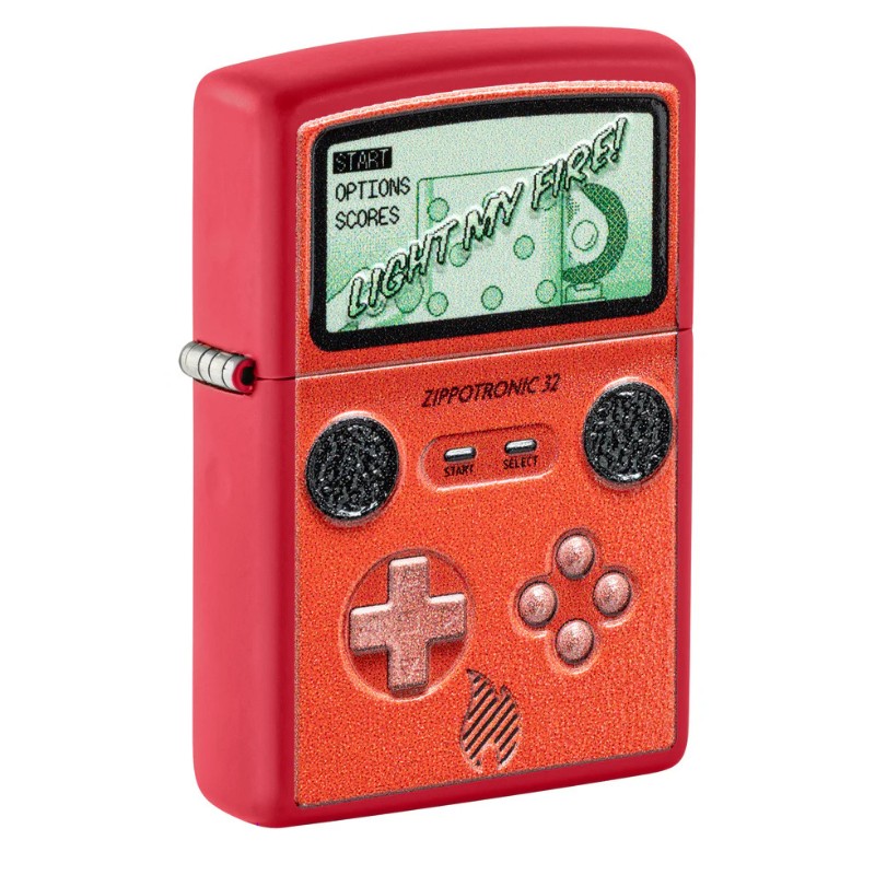 Relive your favorite retro video game with this classic Red Matte lighter. A handheld gaming device is rendered in our Texture Print process for a realistic and nostalgic feel. Comes packaged in a gift box.
