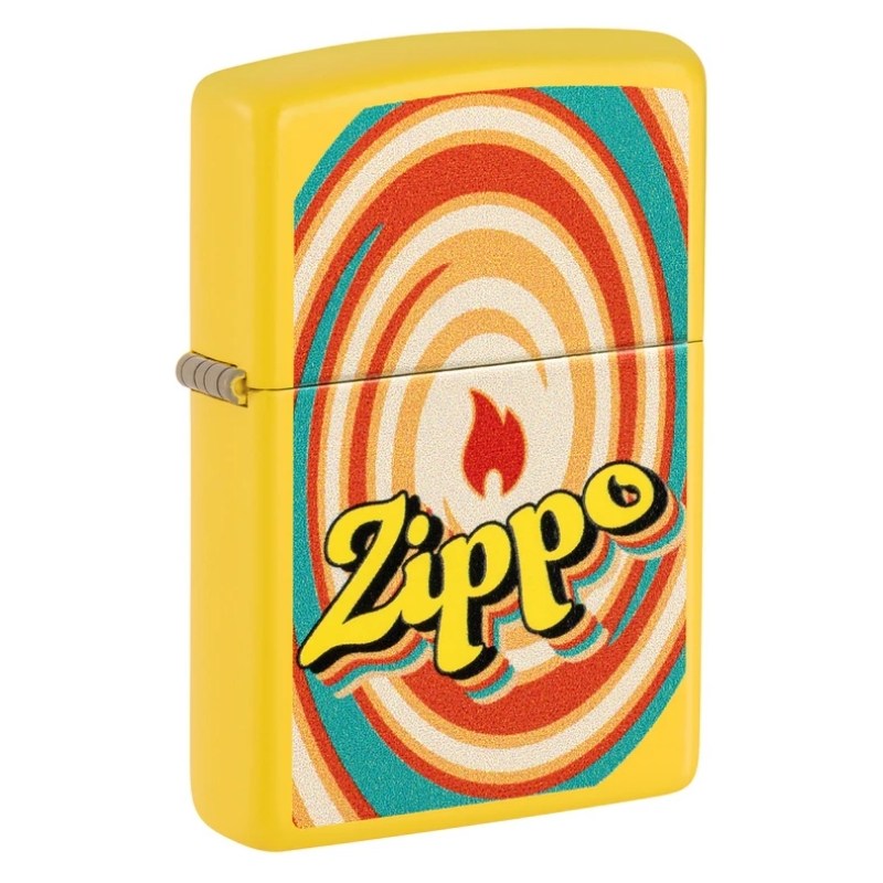 Surrounded by a hypnotic spiral, the Zippo flame icon and wordmark stand out on this classic Sunflower lighter in a mesmerizing Color Image design. Comes packaged in a gift box.